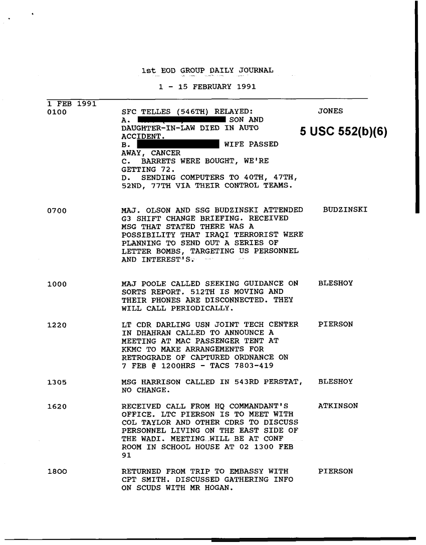 Document 85 f:/Week-42/BX005554/ARMY EOD IN DESERT STORM VOL 1 1ST EOD GROUP/1st eod group daily journal 1 15 february 1:12269616090375