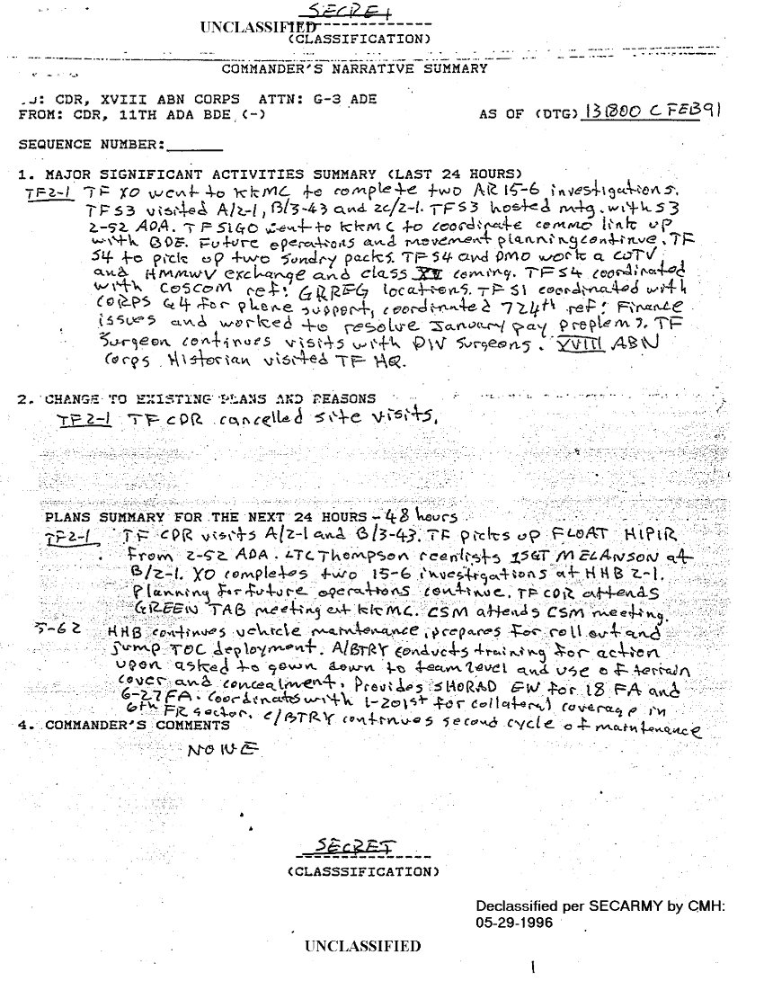 Document 36 f:/Week-18/BX000056/TASK FORCE 2-1 ADA SITREPS FEB 91/situation reports 11th ada bde feb 91:010297184310118