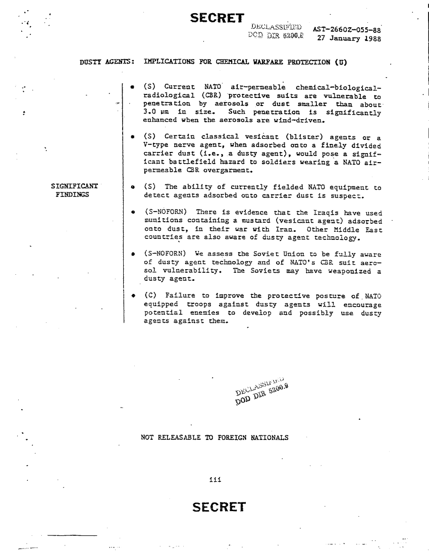 Subject = DUSTY AGENTS IMPLICATIONS FOR CHEMICAL WARFARE P