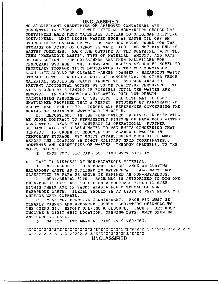Document 2 f:/Week-24/BX000211/TASK FORCE DEMO LOG 2-14 MAR 91/hazardous and non hazardous material disposal:01029718423244