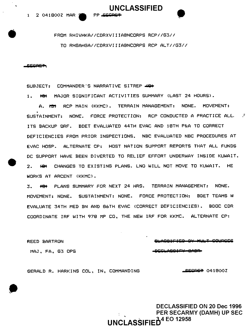 Document 2 f:/Week-10/BX000020/DUTY LOG G3 REAR OUTGOING MSG 20 FEB - 14 MAR 91/commanders narrative sitrep:0102971552506