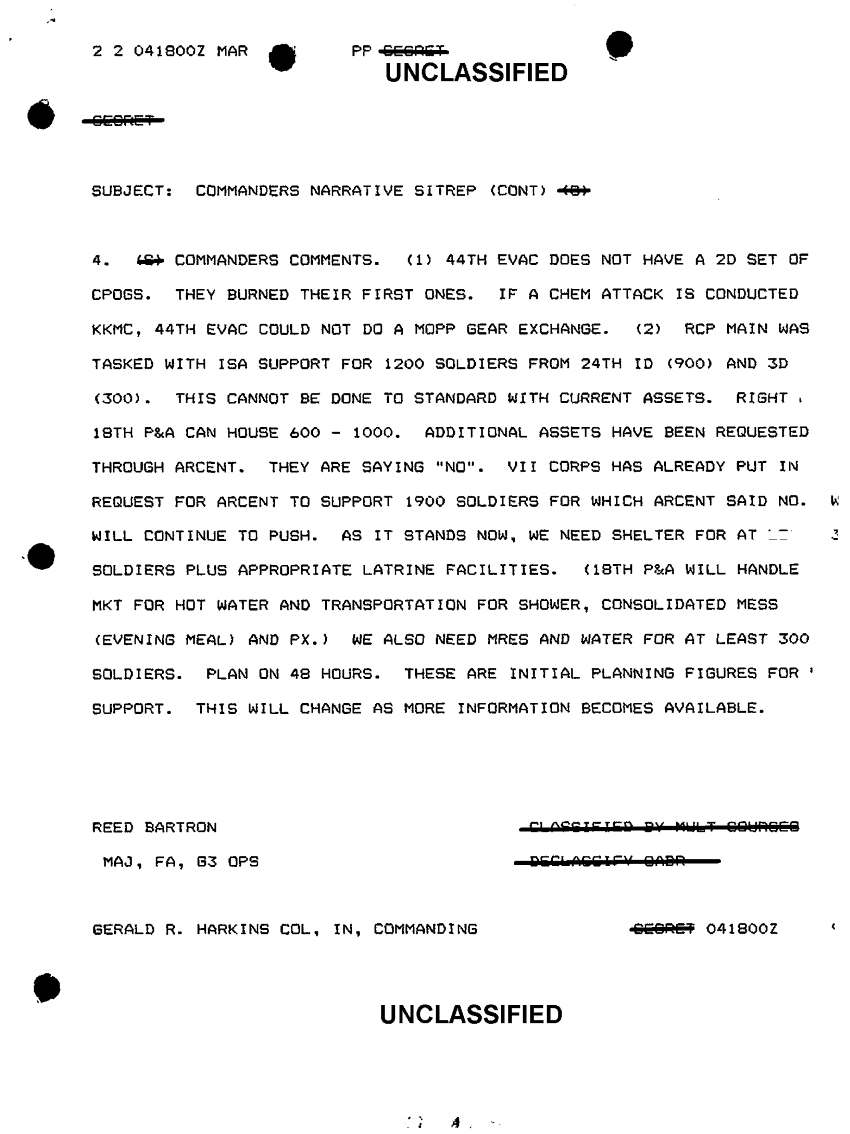 Document 2 f:/Week-10/BX000020/DUTY LOG G3 REAR OUTGOING MSG 20 FEB - 14 MAR 91/commanders narrative sitrep:0102971552506
