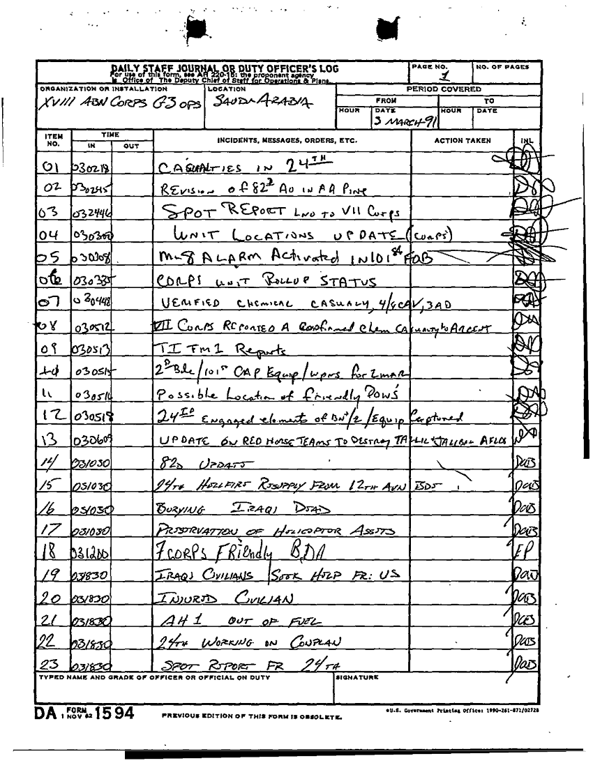 Document 2 f:/Week-10/BX000022/DUTY LOG G3 MAIN 3 MAR 91/daily staff journal or duty officers log:01029718424876