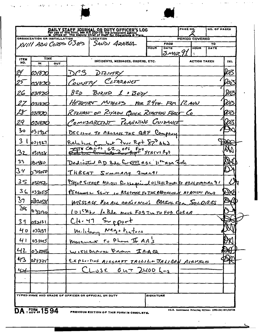 Document 2 f:/Week-10/BX000022/DUTY LOG G3 MAIN 3 MAR 91/daily staff journal or duty officers log:01029718424876