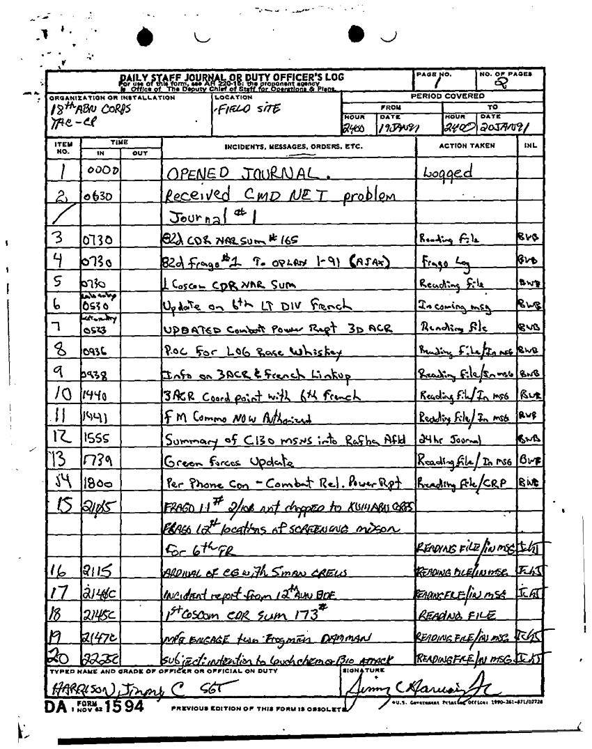 Document 3 f:/Week-12/BX000024/DUTY LOG G3 TAC CP 19 JAN 91/daily staff journal or duty officers log 19 jan :01029718425589