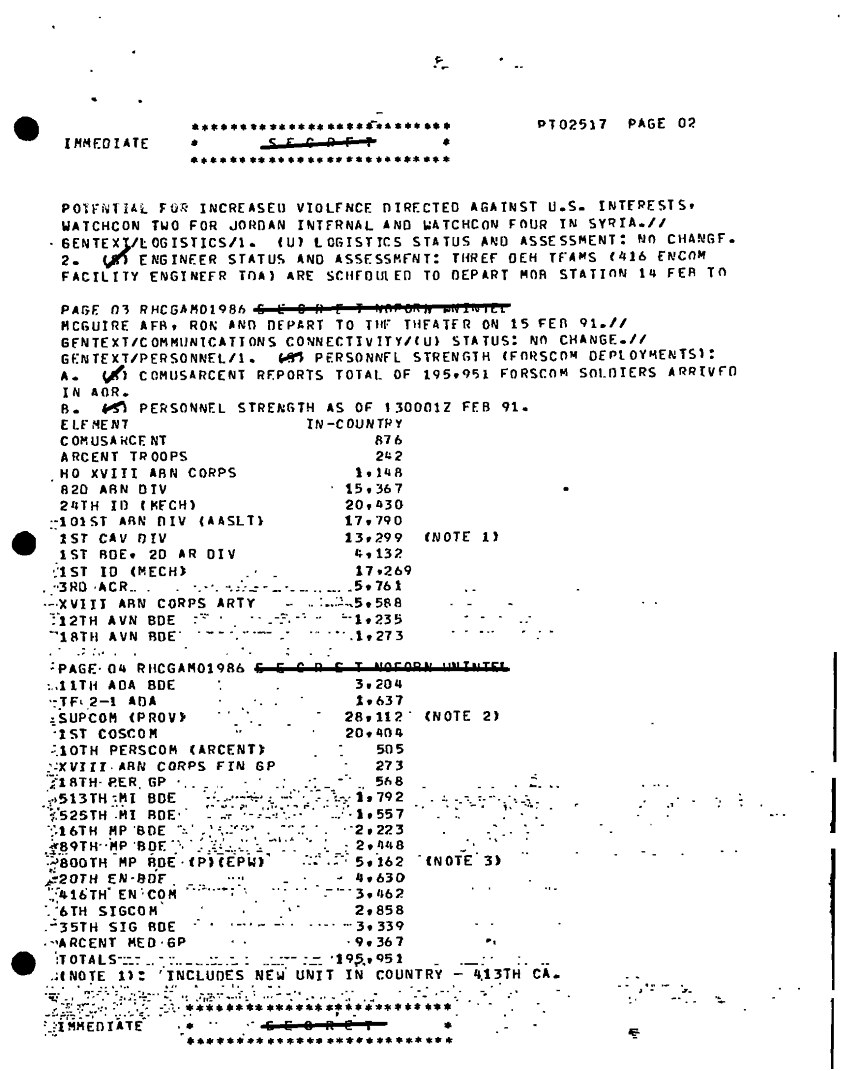 Folder Title = INCOMING DESERT SHIELD OPERATIONAL UPDATES G3 FEB 3 OF 6