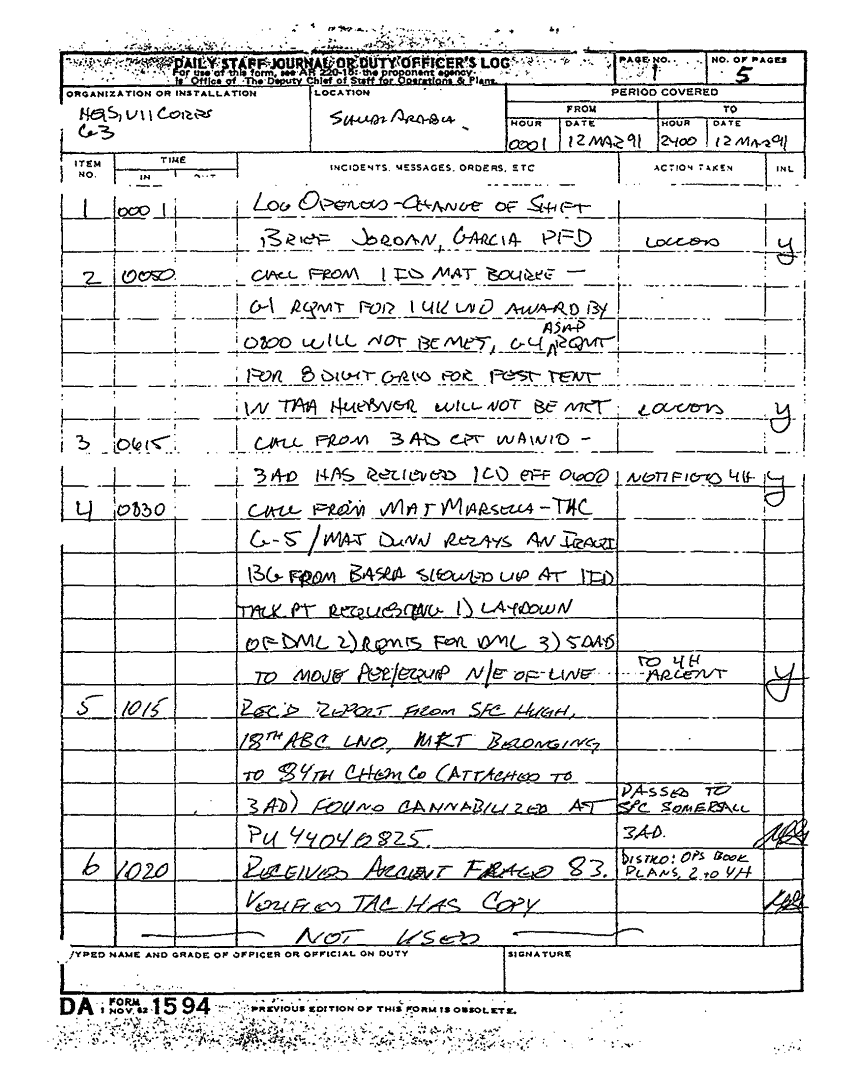 Folder Title = DAILY STAFF JOURNALS-12 MAR 91-1
