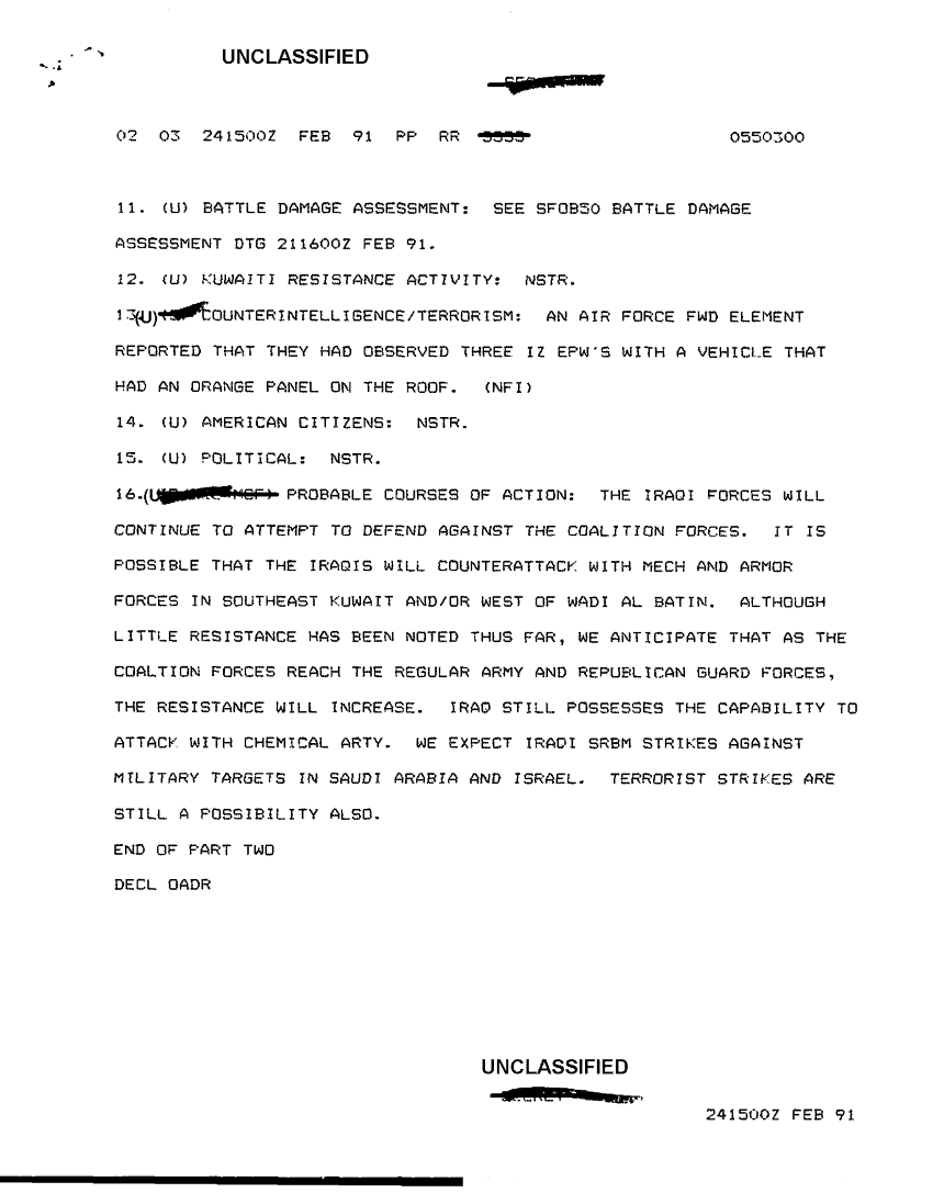 Document 8 f:/Week-46/BX004010/DESERT SHIELD AND DESERT STORM INTSUMS-SFOB 50-103-91 21 FEB-4 MAR 91/intsum sfob50 110 91:01029718425488