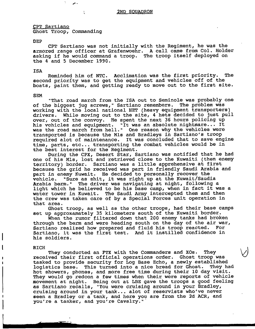 Subject = 2ND SQDRN CPT SARTLANO GHOST TRP COMMANDING
