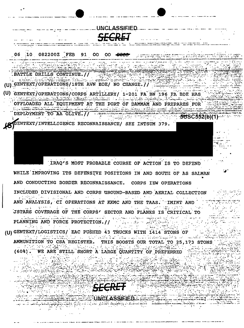 Subject = DAILY STAFF JOURNAL OR DUTY OFFICERS LOG 9 FEB 91