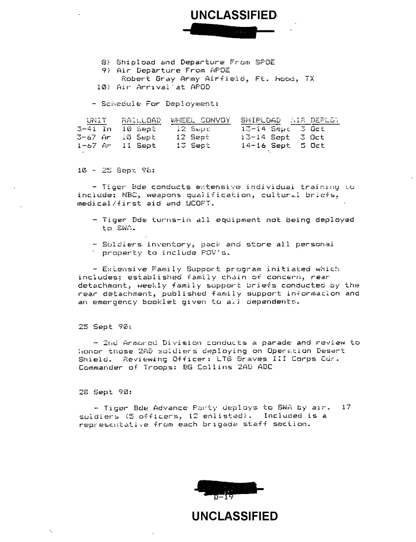 Subject = ANNEX D TIGER BRIGADE CHRONOLOGY TABLE OF CONTENTS
