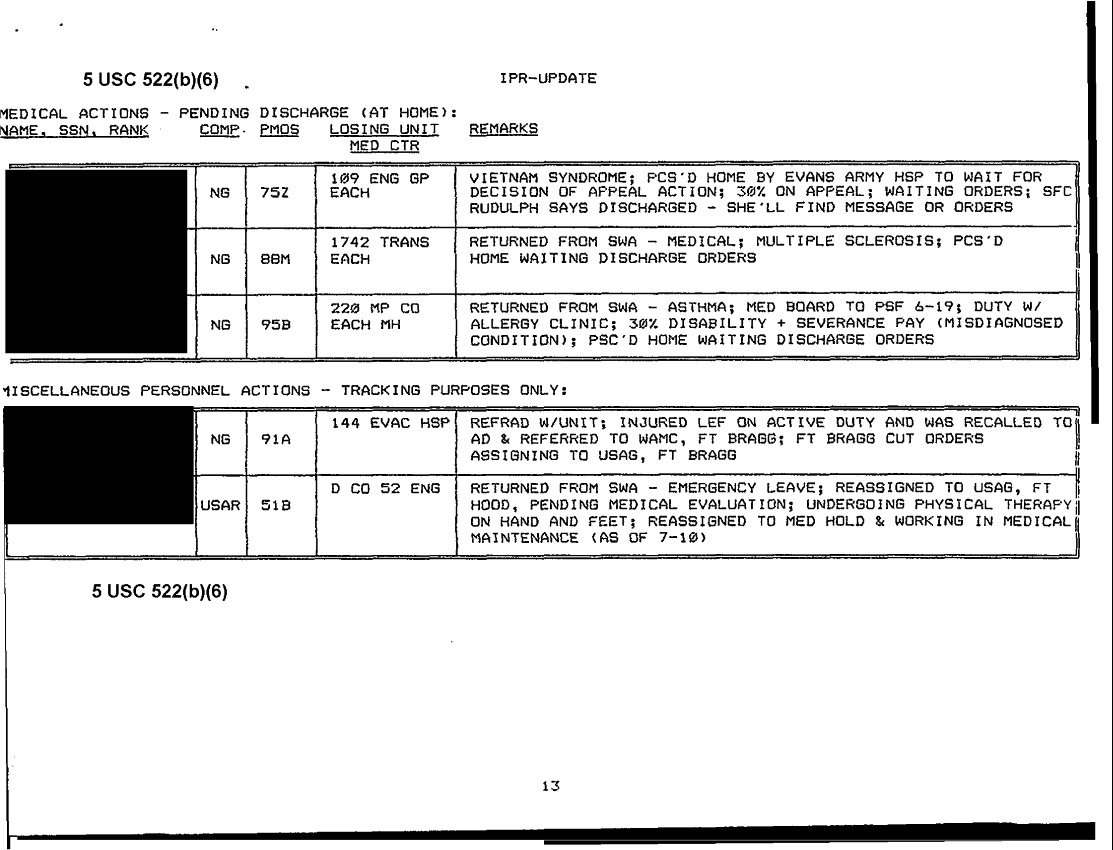 Document 17 f:/Week-48/BX005603/PERSONNEL INFORMATION SYSTEMS REPORTS-3/ipr update week 27 29 jul 91:0128971851516