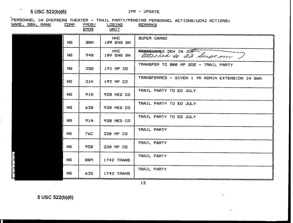 Document 16 f:/Week-48/BX005603/PERSONNEL INFORMATION SYSTEMS REPORTS-3/ipr update week 25 15 jul 91:01289718515510