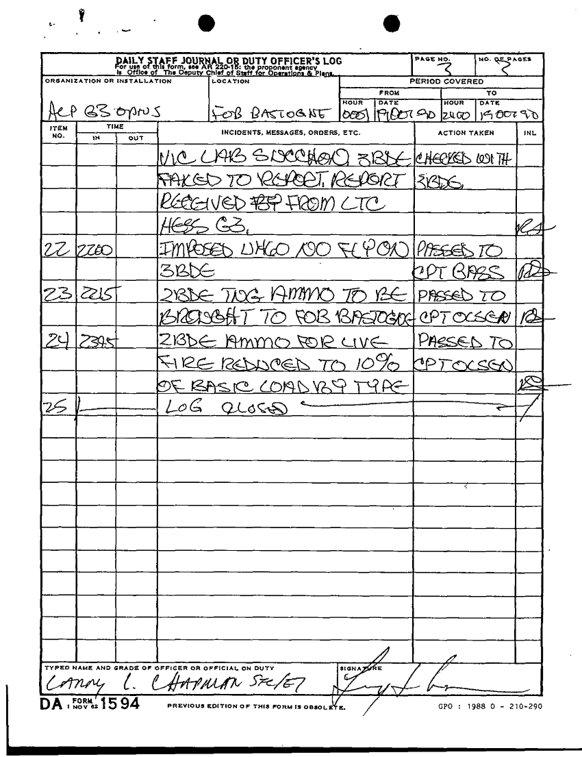 Folder Title = DS-S G3 ACP G3 OPNS FOB BASTOGNE DUTY LOGS