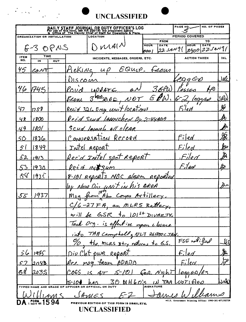 Document 7 f:/Week-48/BX001610/DS-S G3 OPS D MAIN DUTY LOG/daily staff journal 22 jan 91:03069709500928