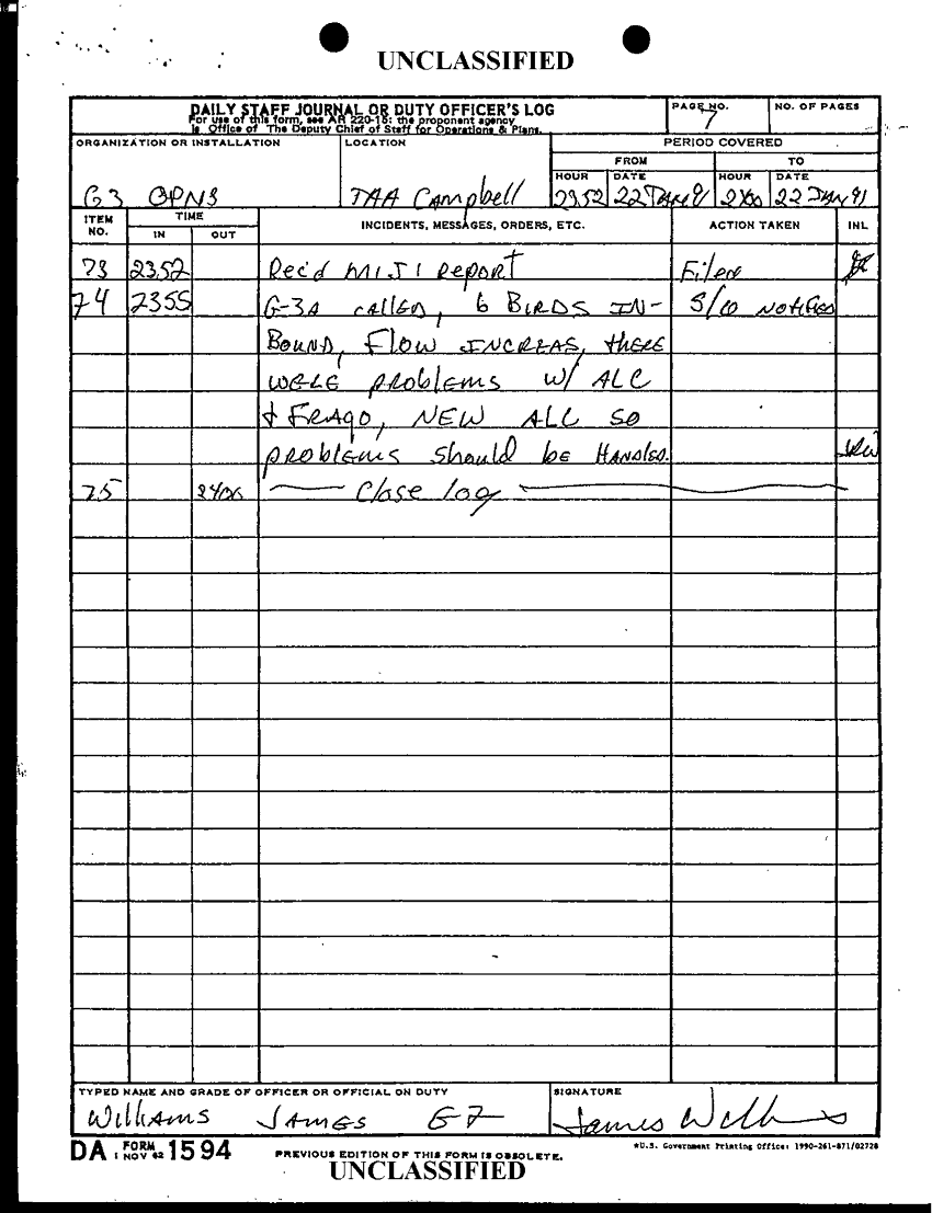 Document 7 f:/Week-48/BX001610/DS-S G3 OPS D MAIN DUTY LOG/daily staff journal 22 jan 91:03069709500928