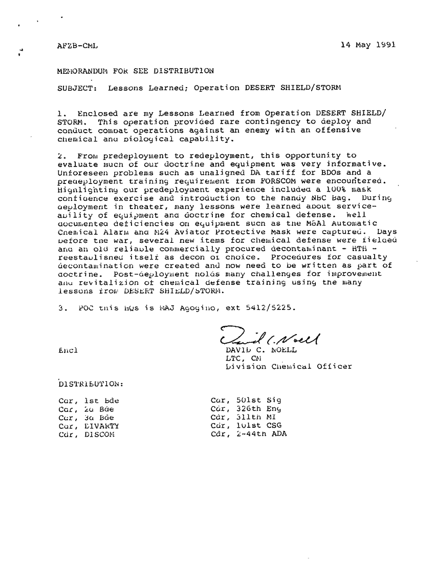 Subject = LESSONS LEARNED OPERATION DESERT SHIELD STORM