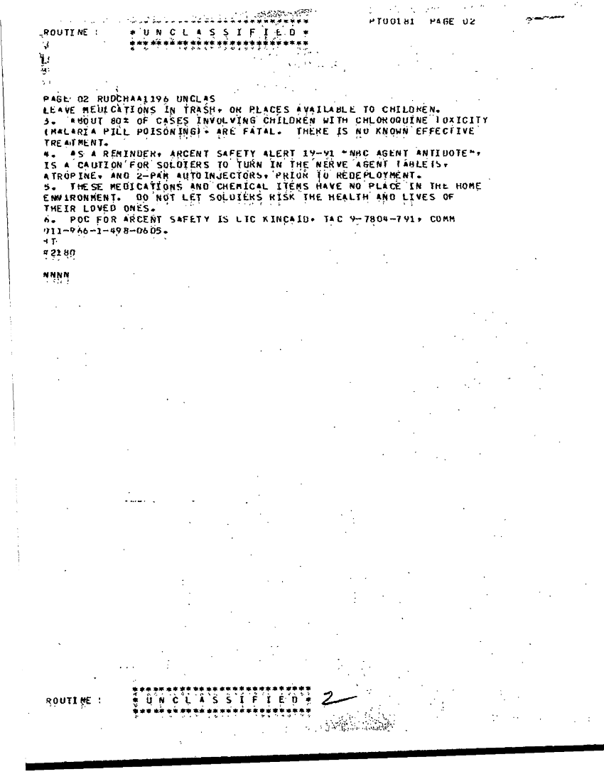 Subject = ARCENT SAFETY ALERT 20 91 HAZARD FROM MALARIA PILLS 8 MAY 91