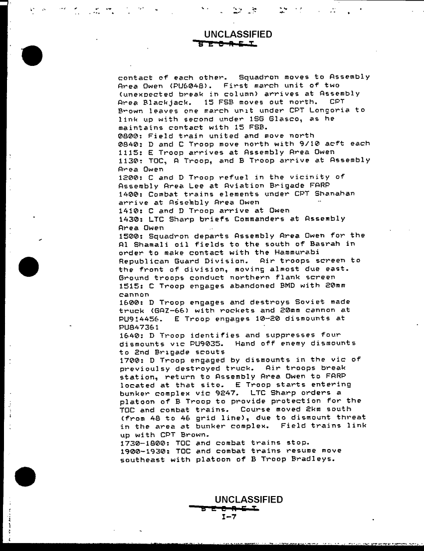 Document 9 f:/Week-49/BX001106/COMMAND REPORT-DESERT SHIELD AND DESERT STORM-10 APR 91/annex i 1 7 cavalry squadron chronology:03069709503250