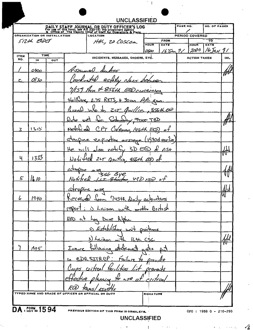 Document 2 f:/Week-64/BX000290/512TH EODCT DAILY JOURNAL AND TACTICAL OPERATIONS CENTER LOG FILES DEC 90 JAN -FEB 91/daily staff journal 512th ord det eodct 17 jan 91:04239710042514