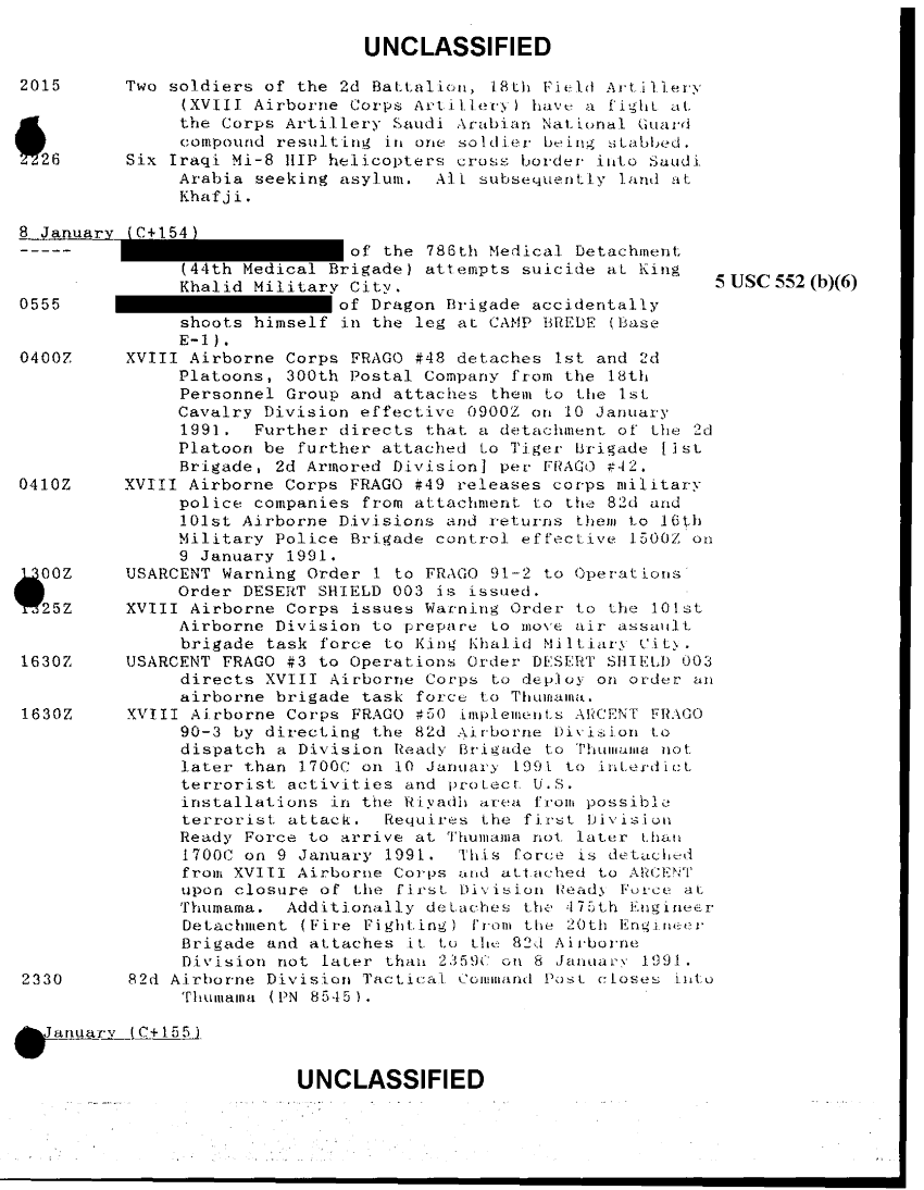 Subject = XVIII AIRBORNE CORPS OPERATION DESERT SHIELD CHRONOLOGY