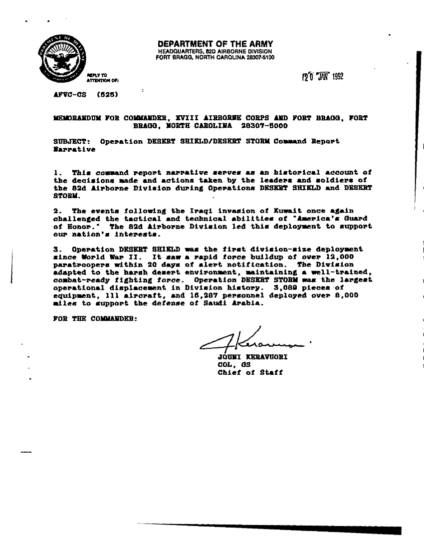 Document 96 f:/Week-22/BX001509/82D ABN DIVISION OPERATION DES RT SHEILD AND DESERT STORM COMMAND REPORT/command report narrative:04189716374810