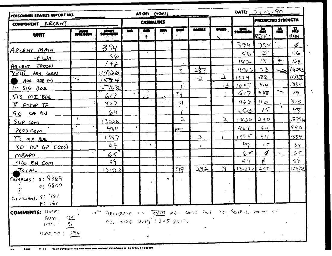 Document 3 f:/Week-28/BX000411/COMMAND REPORTS - PERSTATS AUG-DEC 90 PART 2/arcent perstat 22 nov 90:05099711361514