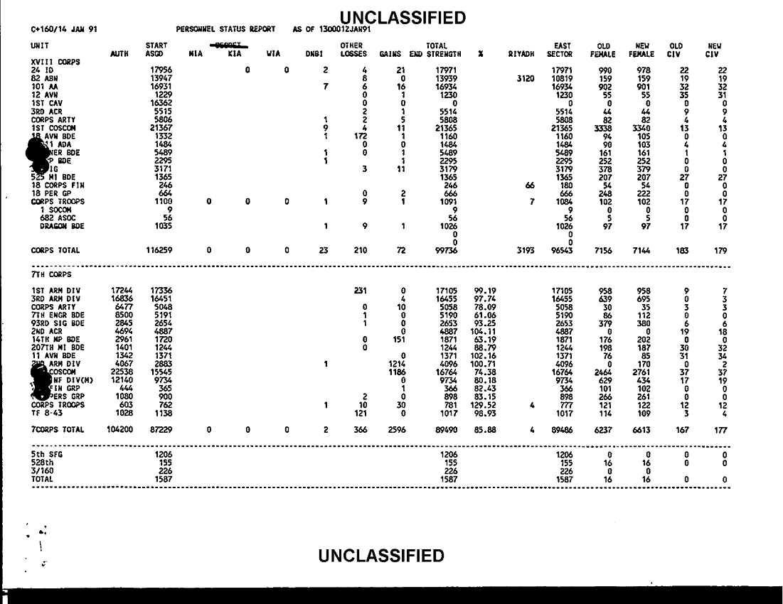 Document 9 f:/Week-28/BX000411/COMMAND REPORTS-PERSTATS JAN-MAR 91 PART 2/personnel status report 14 jan 91:050997114217171