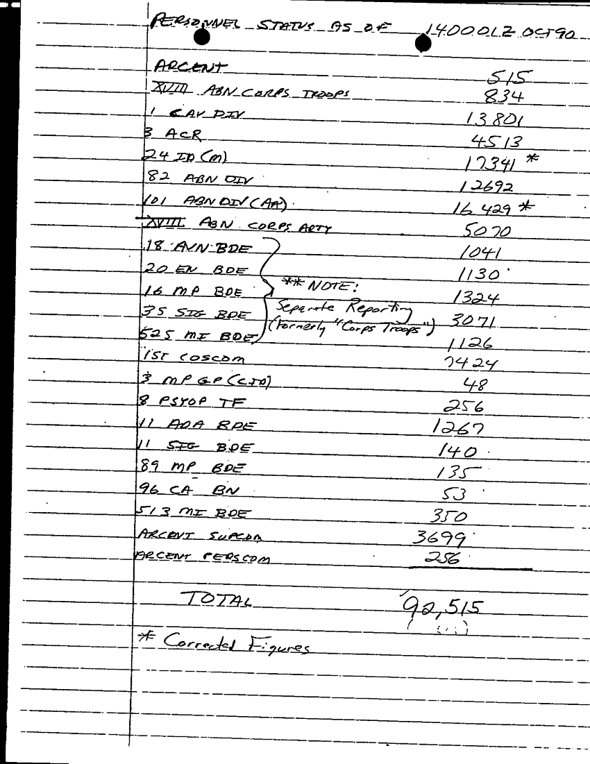Document 3 f:/Week-28/BX000411/COMMAND REPORTS - PERSTATS AUG-DEC 90 PART 1/personnel status report 14 oct 90:05099711371338