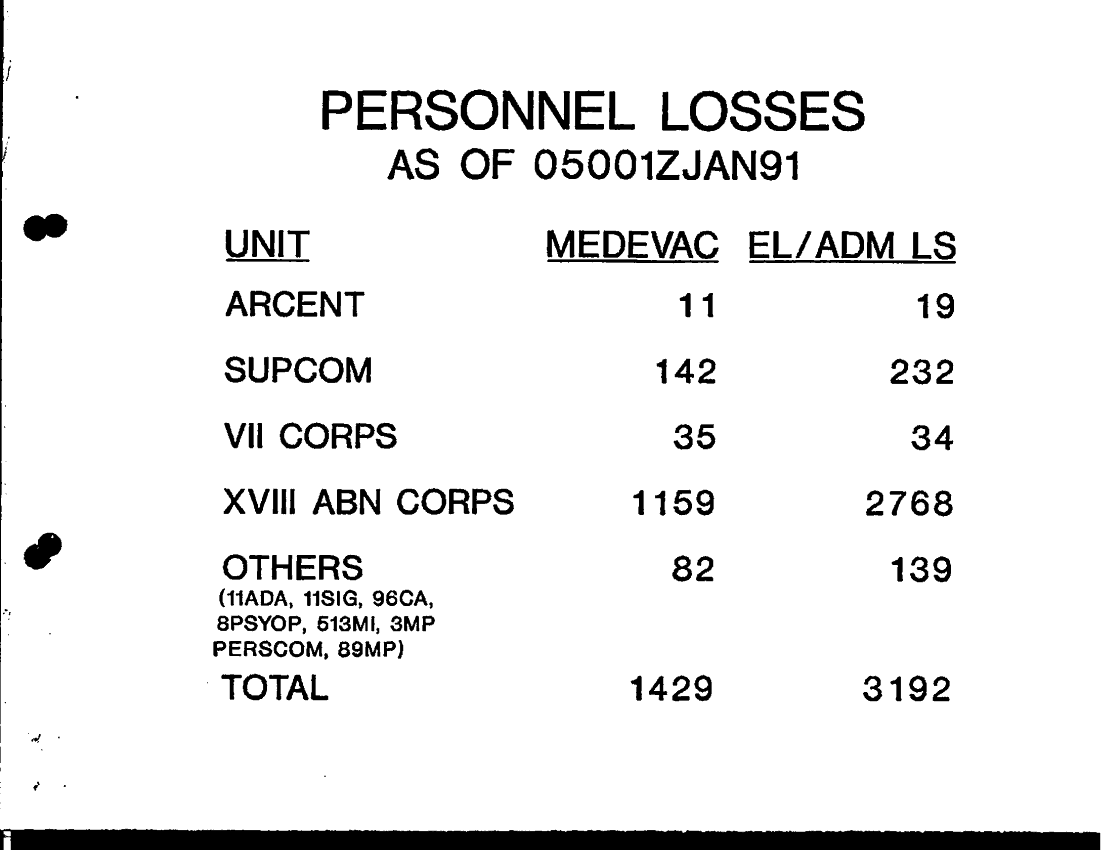 Subject = PERSONNEL LOSSES 5 JAN 91