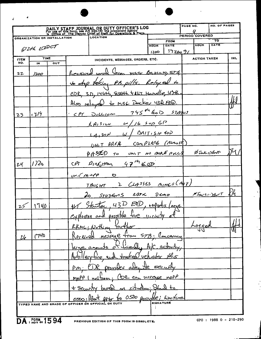 Document 2 f:/Week-64/BX000290/512TH EODCT DAILY JOURNAL AND TACTICAL OPERATIONS CENTER LOG FILES DEC 90 JAN -FEB 91/daily staff journal 512th ord det eodct 17 jan 91:05099711375759