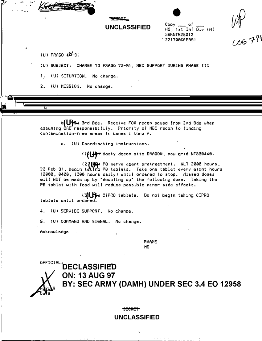 Subject = FRAGO 91 91 CHANG TO FRAGO 73 91 NBC SPT DURING PHASE III