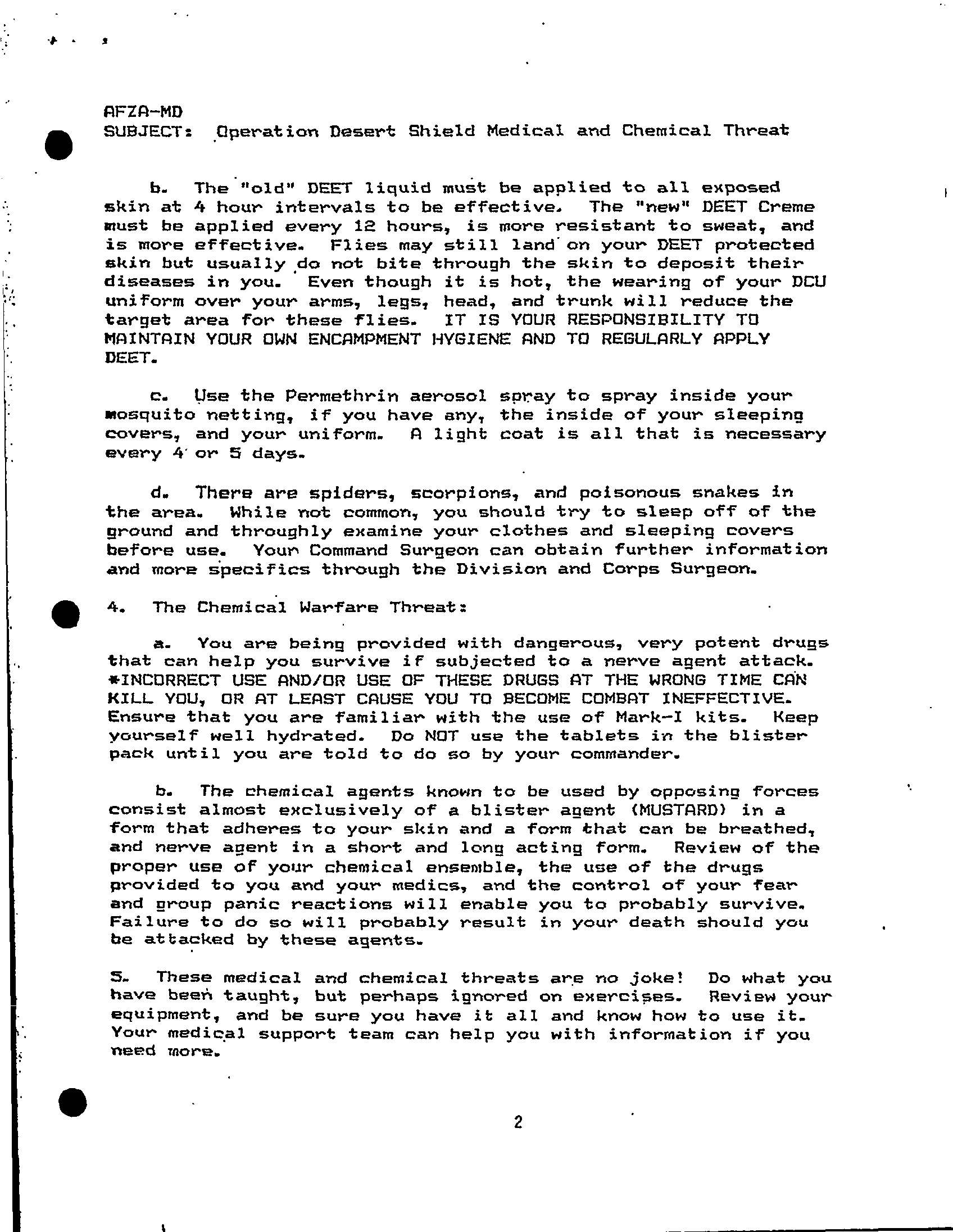 Subject = OPN DESERT SHIELD MEDICAL AND CHEMICAL THREAT