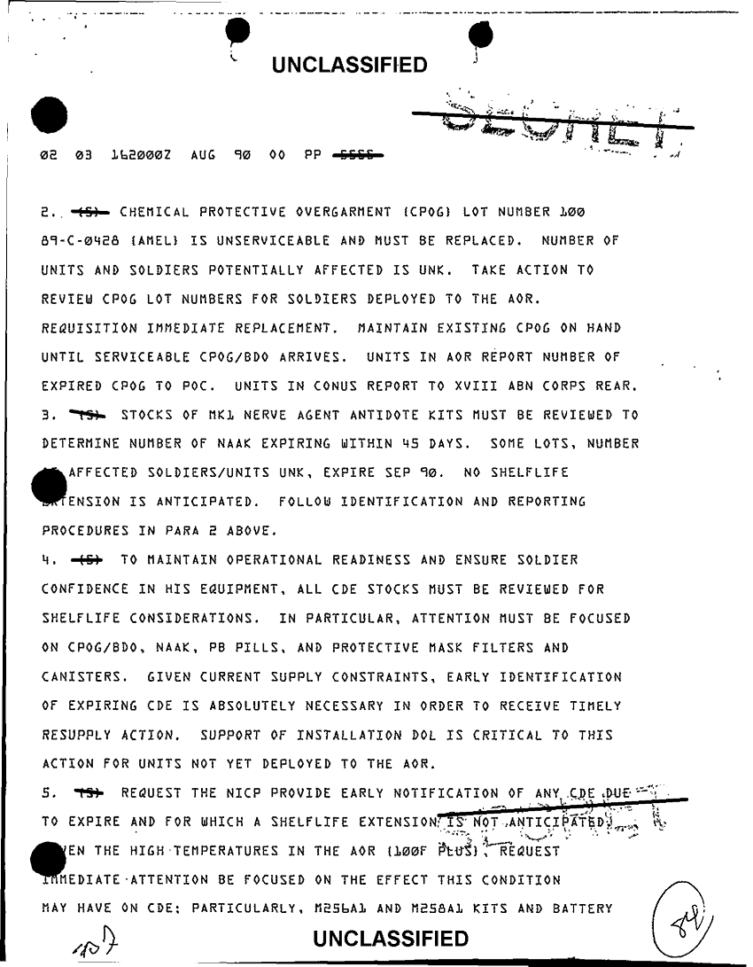 Document 10 f:/Week-64/BX000093/MISC NBC MESSAGES/unserviceable chemical defense equipment 16 aug 90:0828971656552