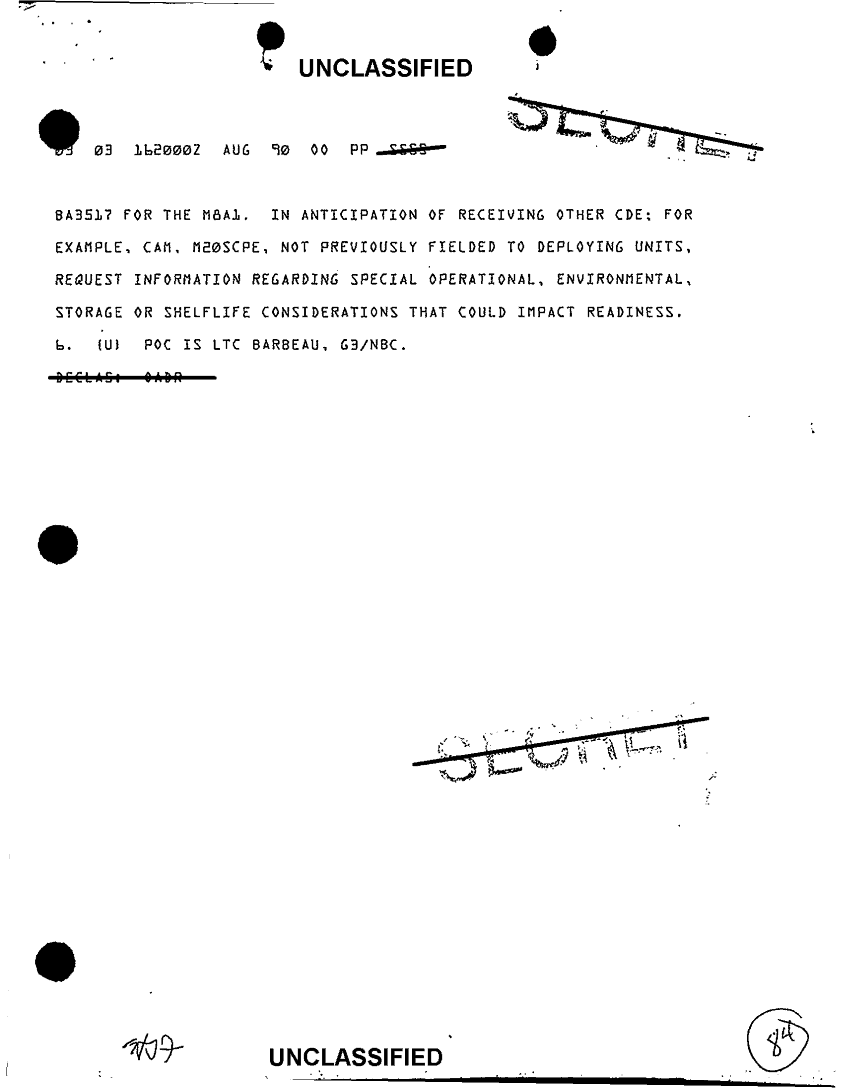 Document 10 f:/Week-64/BX000093/MISC NBC MESSAGES/unserviceable chemical defense equipment 16 aug 90:0828971656552