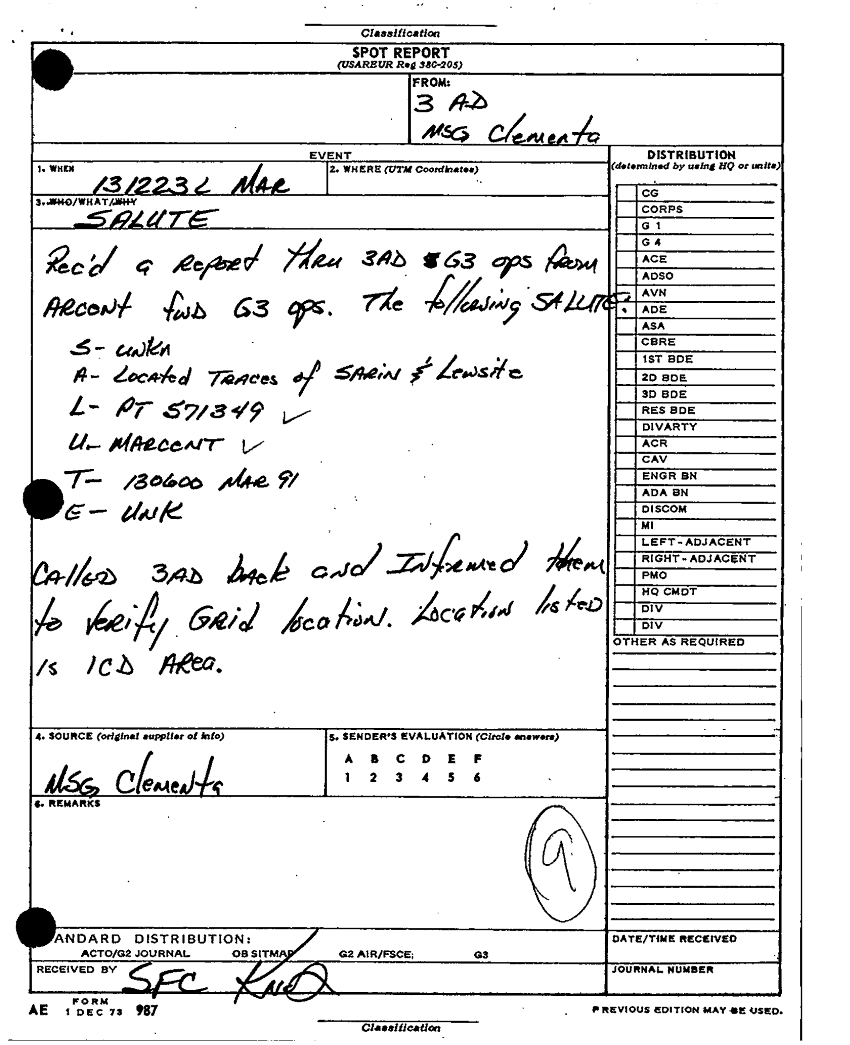 Subject = DAILY STAFF JOURNAL OR DUTY OFFICERS LOG 13 MAR 91