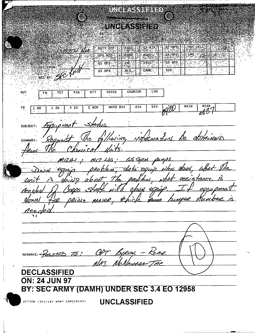 Document 19 f:/Week-25/BX000231/0007 CORPS CHEMICAL BOOK THREE-FOLDER 2 OF 2/daily staff journal or duty officers log 13 mar 91:0922971201259