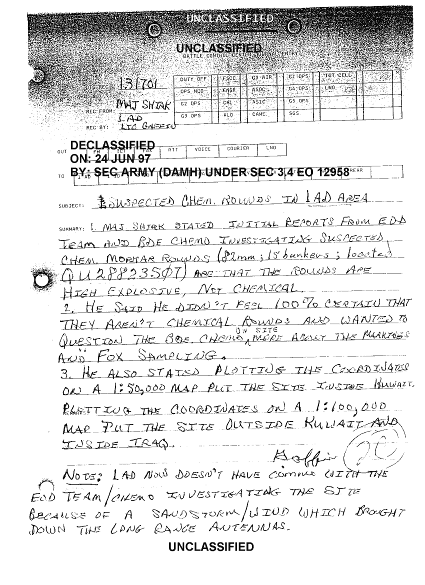 Document 19 f:/Week-25/BX000231/0007 CORPS CHEMICAL BOOK THREE-FOLDER 2 OF 2/daily staff journal or duty officers log 13 mar 91:0922971201259