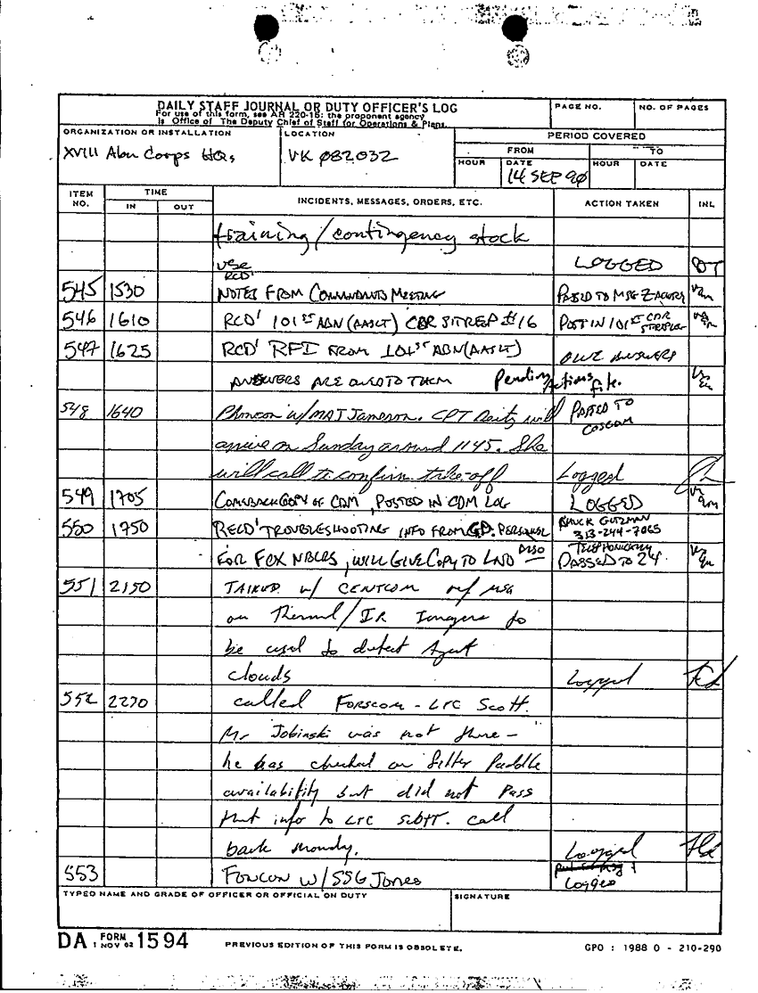 Document 36 f:/Week-64/BX000093/DAILY STAFF JOURNALS WITH MESSAGES 11 SEP-23 SEP 90/daily staff journal 10 sep:09229712012916