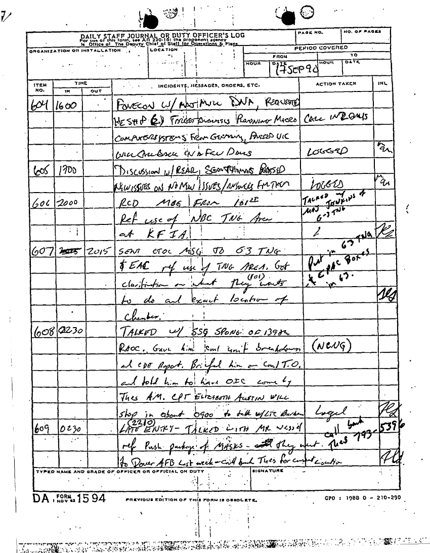 Folder Title = DAILY STAFF JOURNALS WITH MESSAGES 11 SEP-23 SEP 90