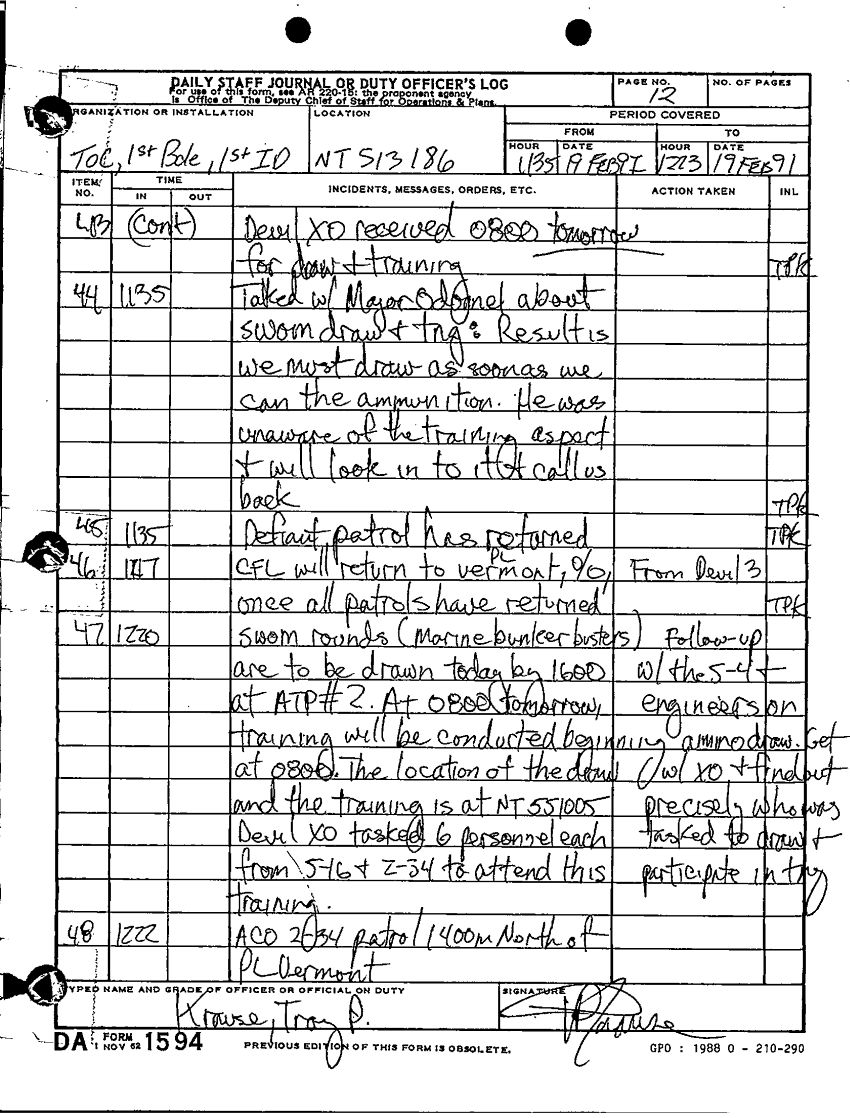 Document 30 f:/Week-60/BX001072/TOC 1ST BDE 1 ID-DAILY STAFF JOURNALS-16 FEB THRU 25 FEB 91/daily staff journal 19 feb 91:09229712012610