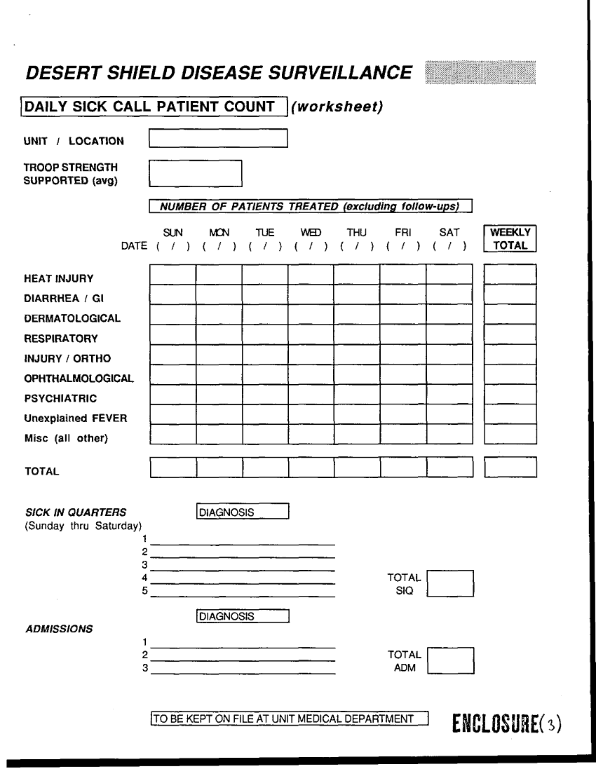 Subject = DISEASE SURVEILLLANCE IN USMC FORCES DURING DESE