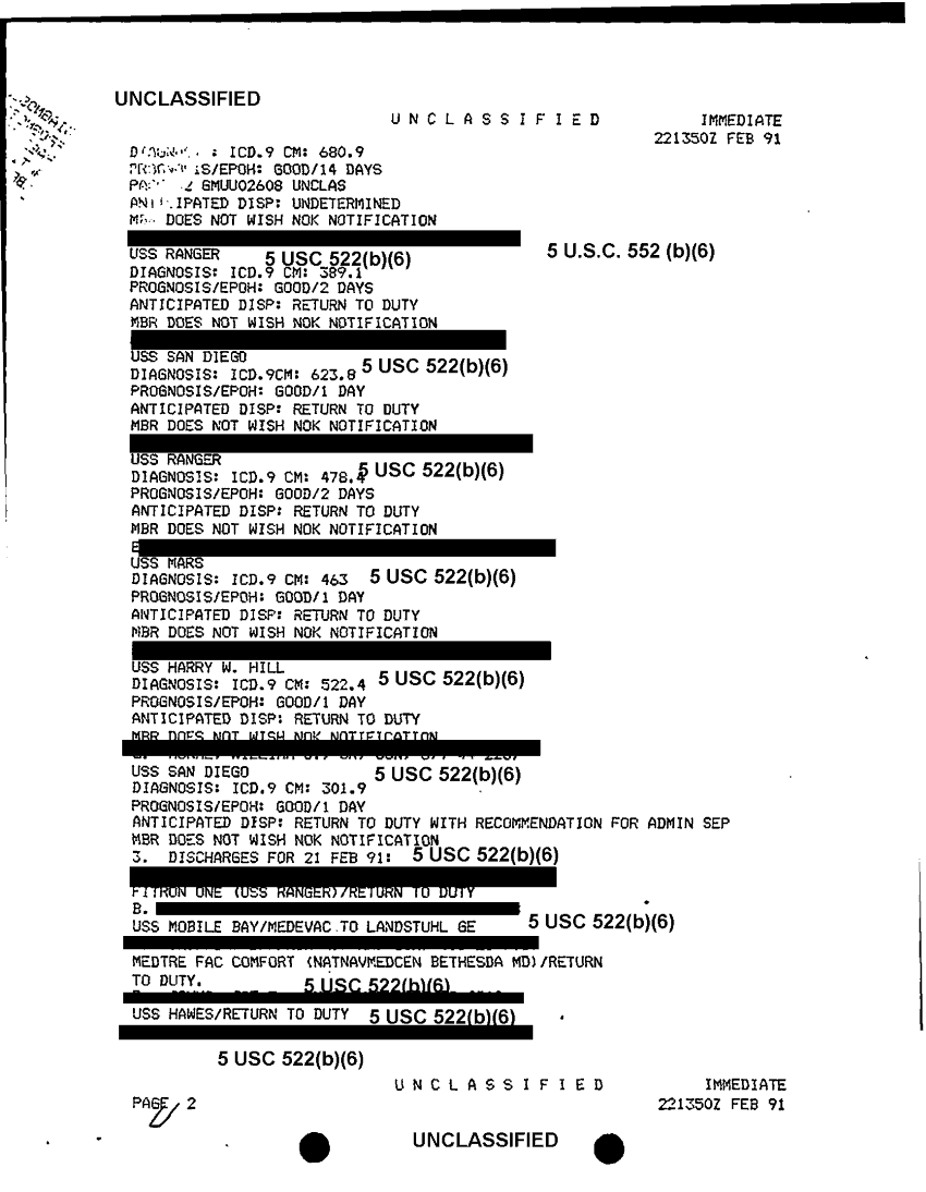 Document 3 f:/Week-39/BX303808/VARIOUS NAVAL MESSAGES FOLDER 2 16-28 FEB 1991/daily patient status report 22 feb 91:1104960910276