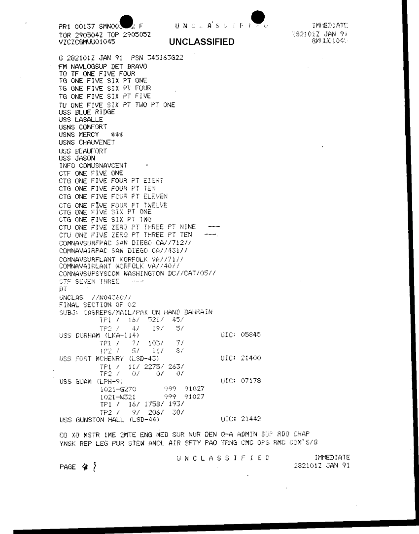 Folder Title = FOLDER 6 VARIOUS NAVAL MESSAGES 16-31 JANUARY 1991
