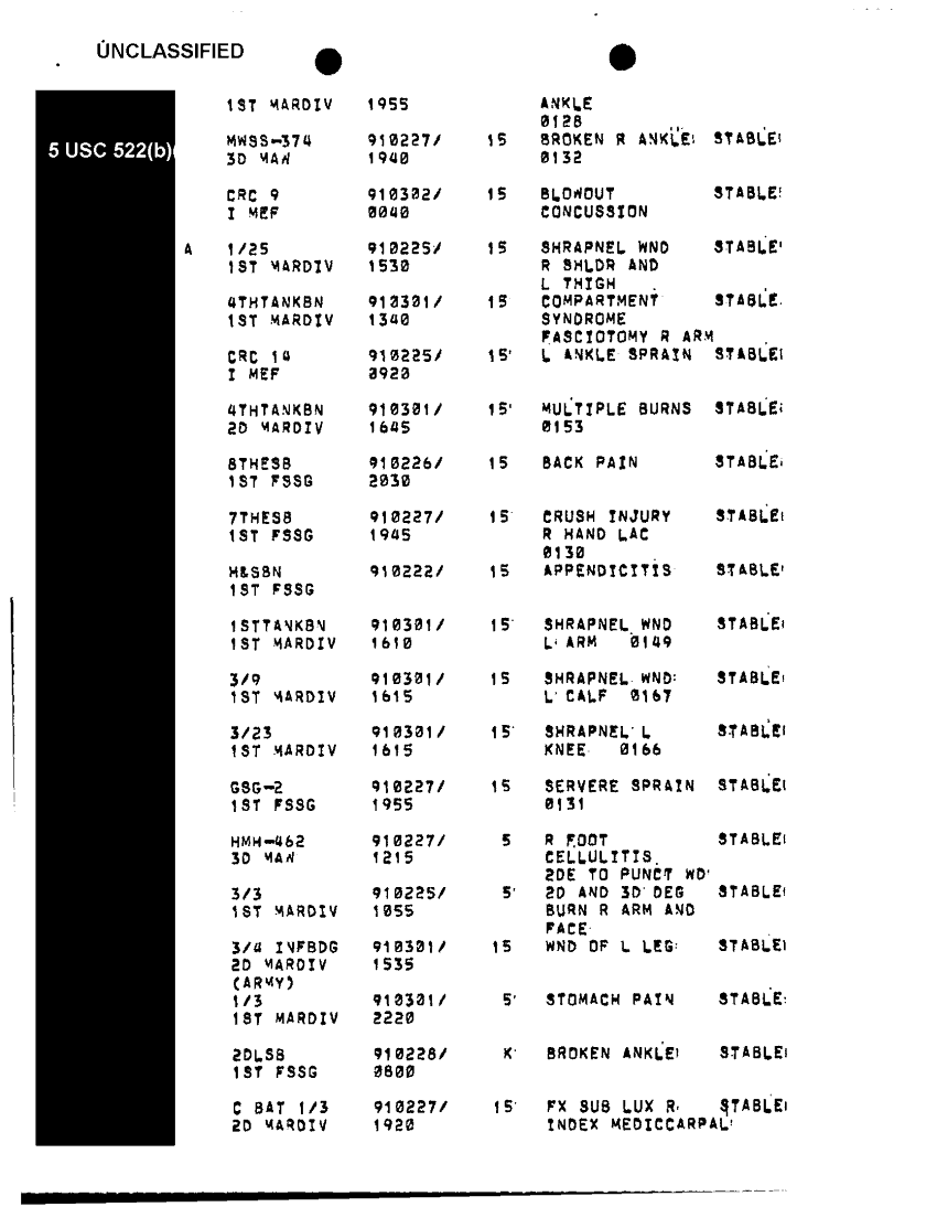 Document 8 f:/Week-39/BX303819/general medical support messages various sources feb - apr 91 cna 2077/report of hosp of i mef forces in swa 03 mar 91:11229616382311