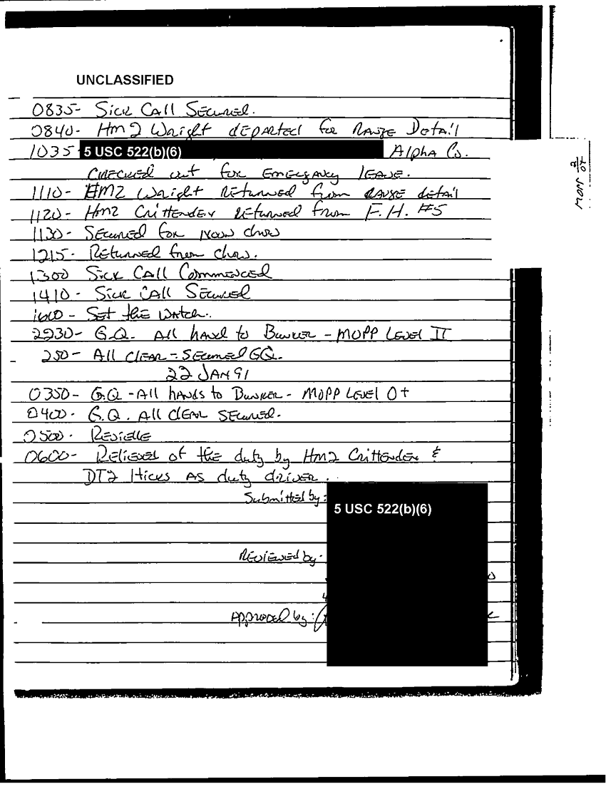 Document 122 f:/Week-37/BX303811/VARIOUS NAVAL MESSAGES FOLDER 3/nmcb 24 log record operation desert shield storm:12249609065513