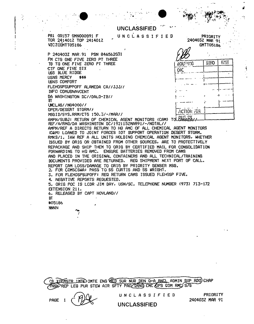 Document 1 f:/Week-44/BX303809/VARIOUS NAVAL MESSAGES FOLDER 2 MARCH 1991/return of chemical agent monitors 24 mar 91:12249609065819