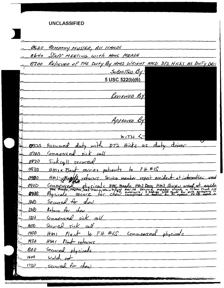 Document 11 f:/Week-37/BX303811/VARIOUS NAVAL MESSAGES FOLDER 4/various journal entries sick call 22 mar 91:03249710420113