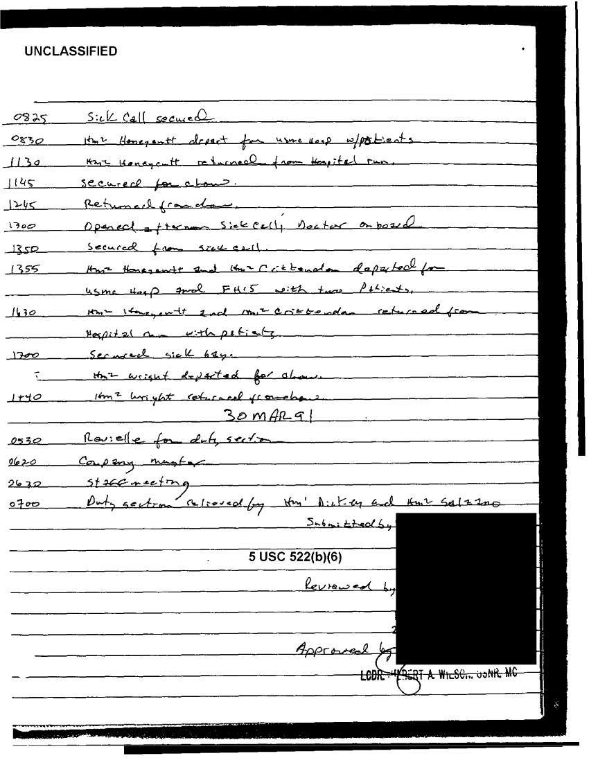 Document 11 f:/Week-37/BX303811/VARIOUS NAVAL MESSAGES FOLDER 4/various journal entries sick call 22 mar 91:03249710420113