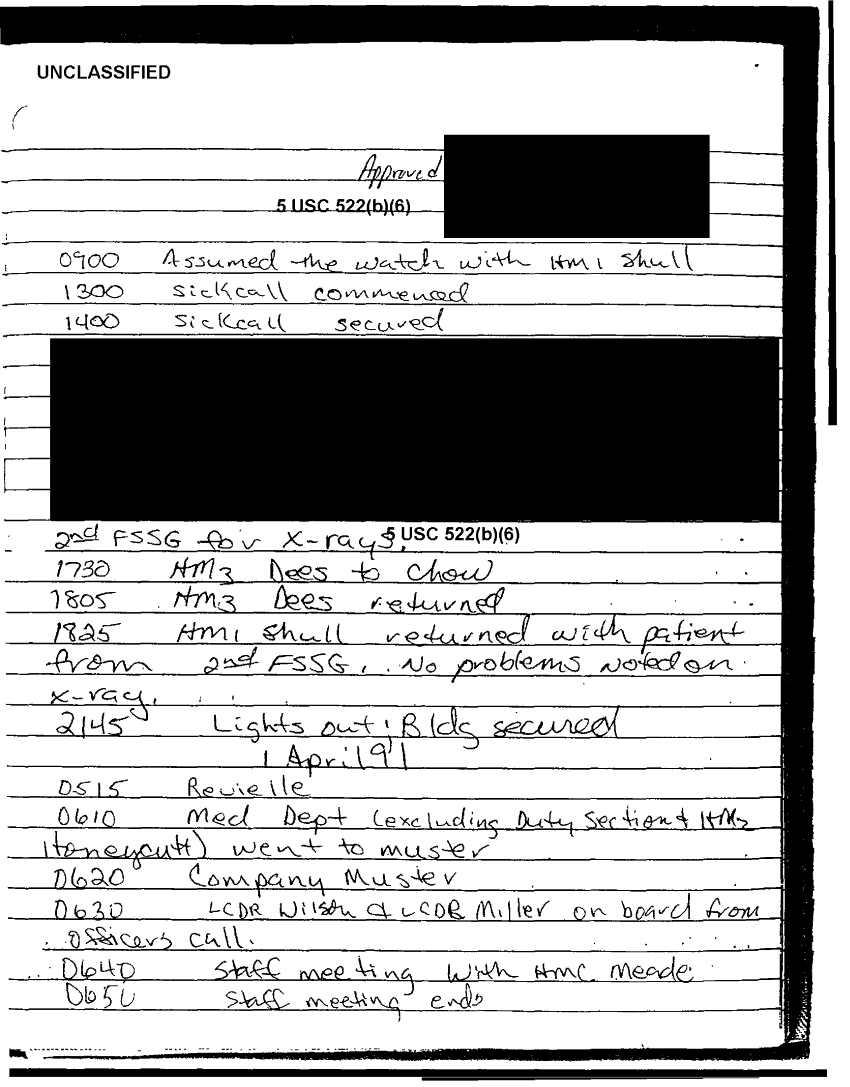 Document 11 f:/Week-37/BX303811/VARIOUS NAVAL MESSAGES FOLDER 4/various journal entries sick call 22 mar 91:03249710420113